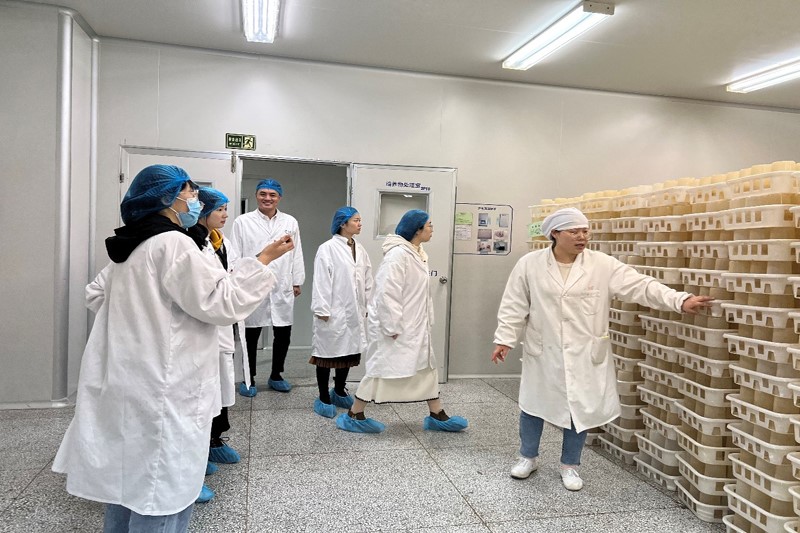 參觀的最后一站——誠志生物廠區(qū)。原料藥車間副主任劉亞會和生產技術部王艷揭開了神秘的原料藥生產和亮菌口服液的生產過程。龐大的反應釜、井然有序的管道、黑暗中熒熒閃耀的菌種、現代化提取工藝,讓講解員們真切的感受到在這里生物與化學、經典與創(chuàng)新、現代與傳統(tǒng)是結合得如此巧妙!